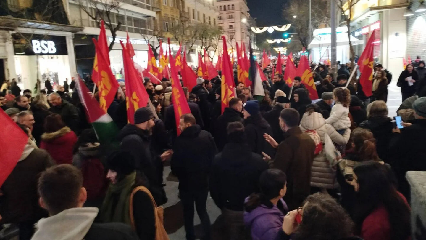 Πορεία διαμαρτυρίας με αφορμή τη στρατιωτική επιχείρηση των ΗΠΑ στη Βενεζουέλα, πραγματοποιήθηκε σήμερα το απόγευμα στο κέντρο της Θεσσαλονίκης από το ΚΚΕ και την ΚΝΕ.
