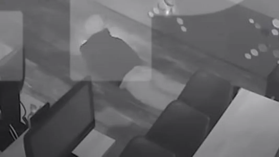 Όπως φαίνεται στα πλάνα που μετέδωσε η ΕΡΤ, ο διαρρήκτης έχει περάσει από την τρύπα, που άνοιξε στον τοίχο σε ένα πρακτορείο ΟΠΑΠ. Χωρίς να κάνει θόρυβο, φτάνει έρποντας στην ταμειακή μηχανή και αρπάζει 2.000 ευρώ.