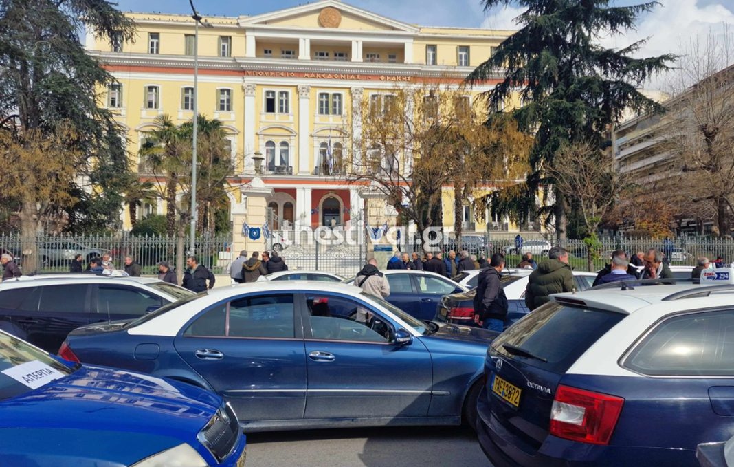 Σήμερα το πρωί οι ιδιοκτήτες ταξί συγκεντρώθηκαν με τα οχήματά τους στο “Παλατάκι” και από εκεί πραγματοποίησαν μηχανοκίνητη πορεία στους δρόμους της πόλης με κατάληξη το ΥΜΑΘ. Αντιπροσωπεία των ιδιοκτητών ταξί εισήλθε στο κτήριο του Διοικητηρίου προκειμένου να επιδώσει τα αιτήματα του κλάδου στα κυβερνητικά στελέχη της Θεσσαλονίκης.