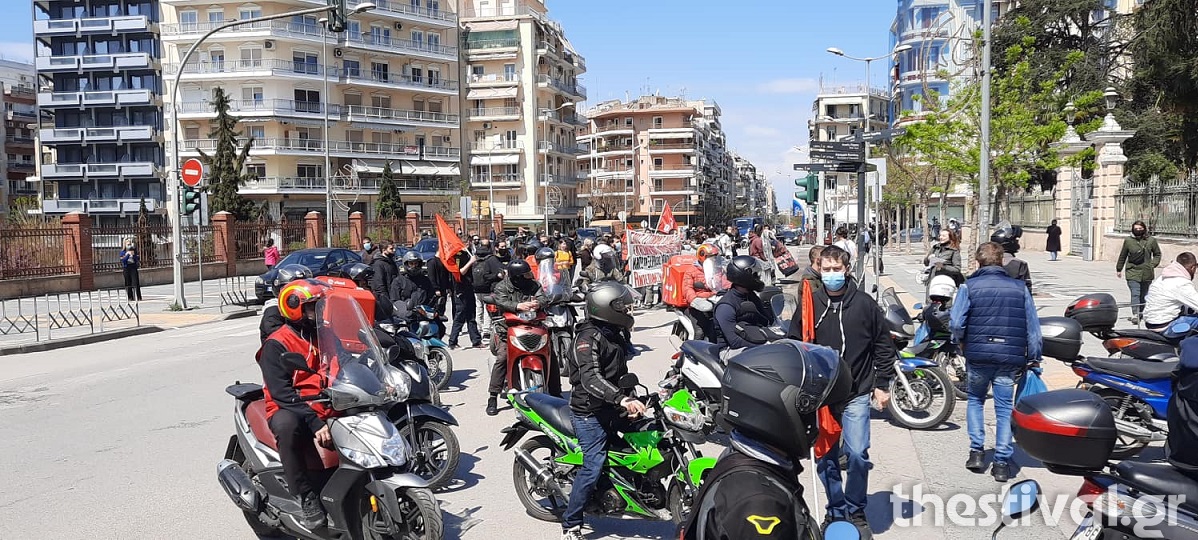 Νωρίτερα, οι διανομείς είχαν συγκεντρωθεί στο Άγαλμα Βενιζέλου, στο κέντρο της Θεσσαλονίκης.