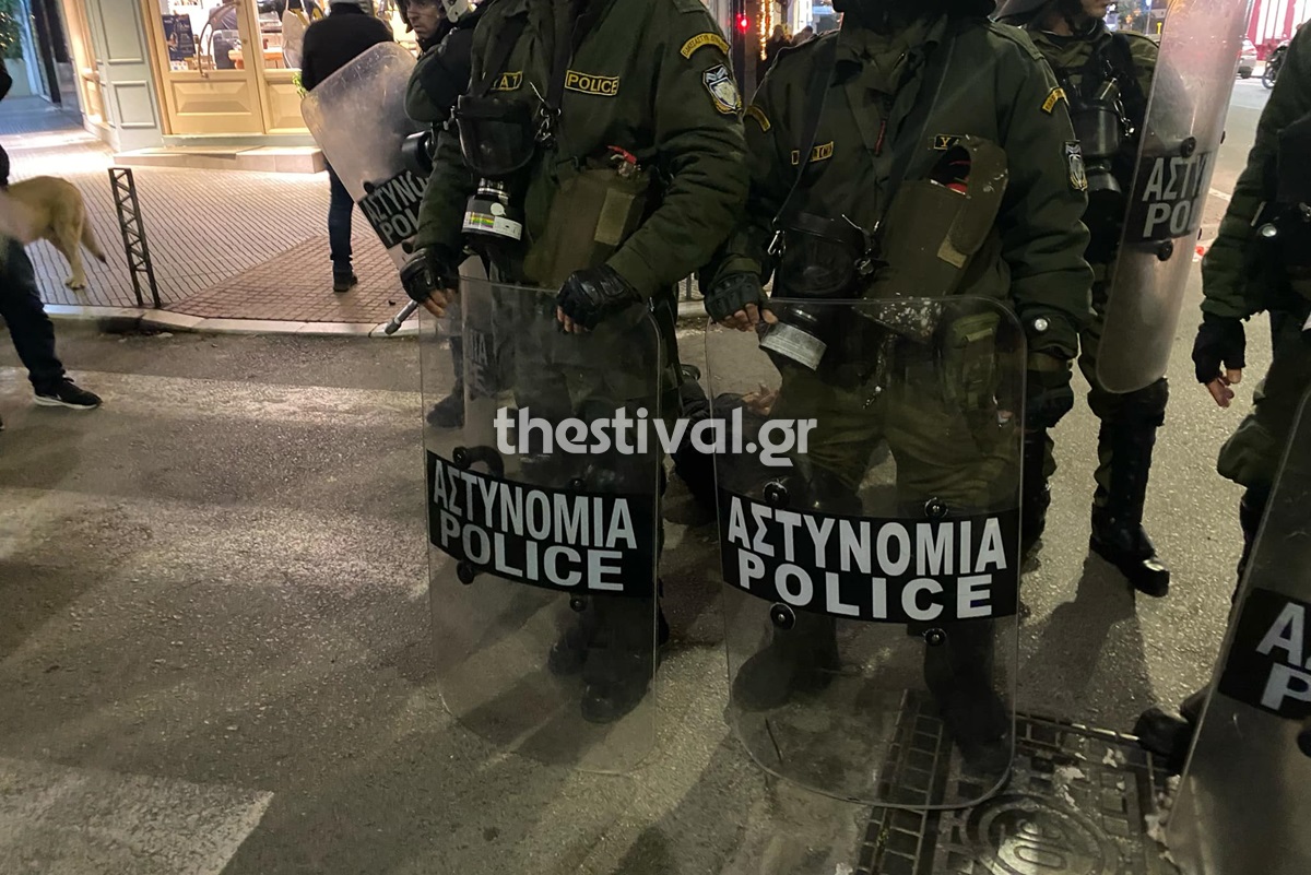 Την ώρα που η Αστυνομία προσήγαγε δεκάδες άτομα από την οδό Κούσκουρα, ομάδα ατόμων επιτέθηκε με ρίψεις αντικειμένων σε διμοιρία των ΜΑΤ που βρισκόταν στην Τσιμισκή, στο ύψος της Ναυαρίνου.