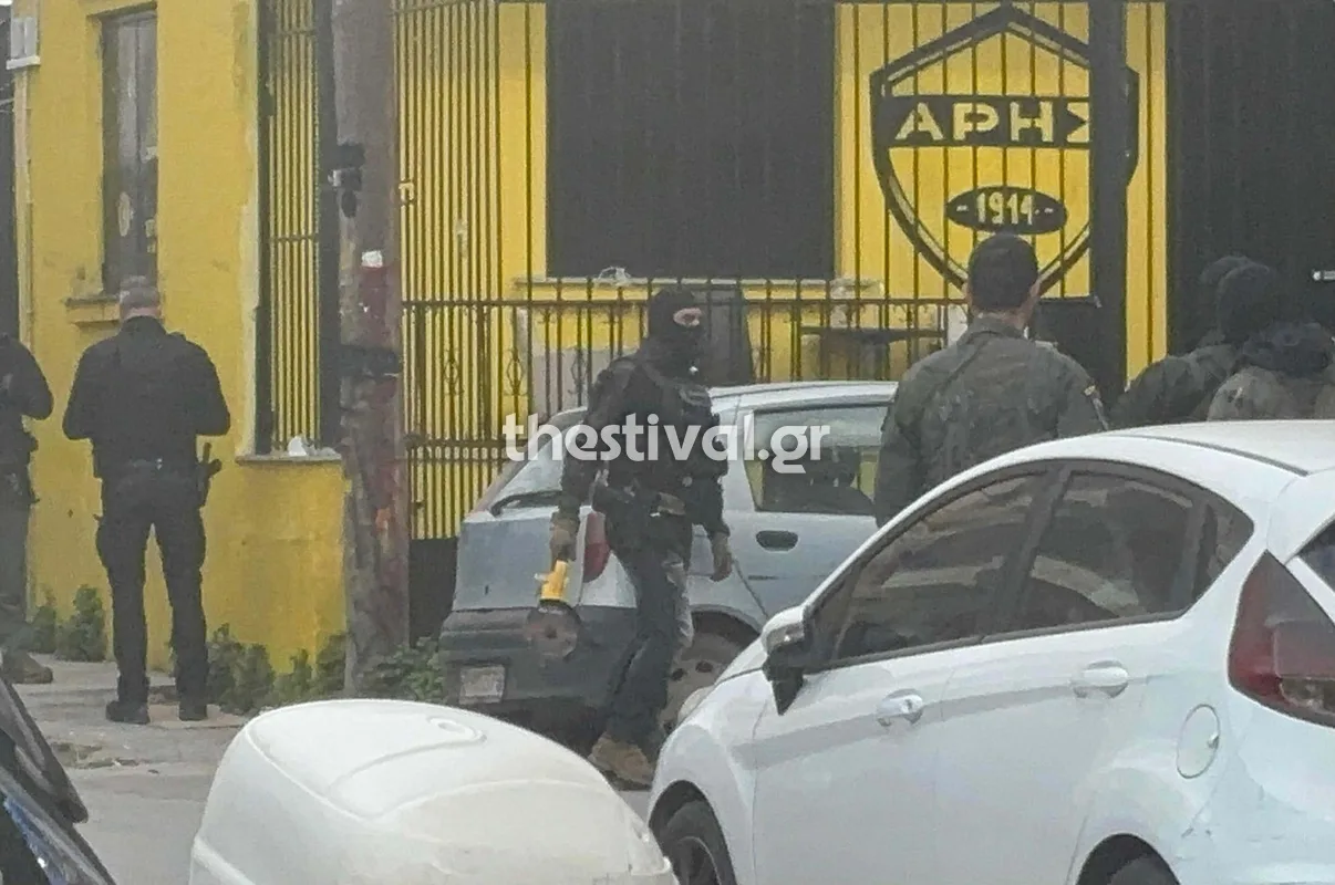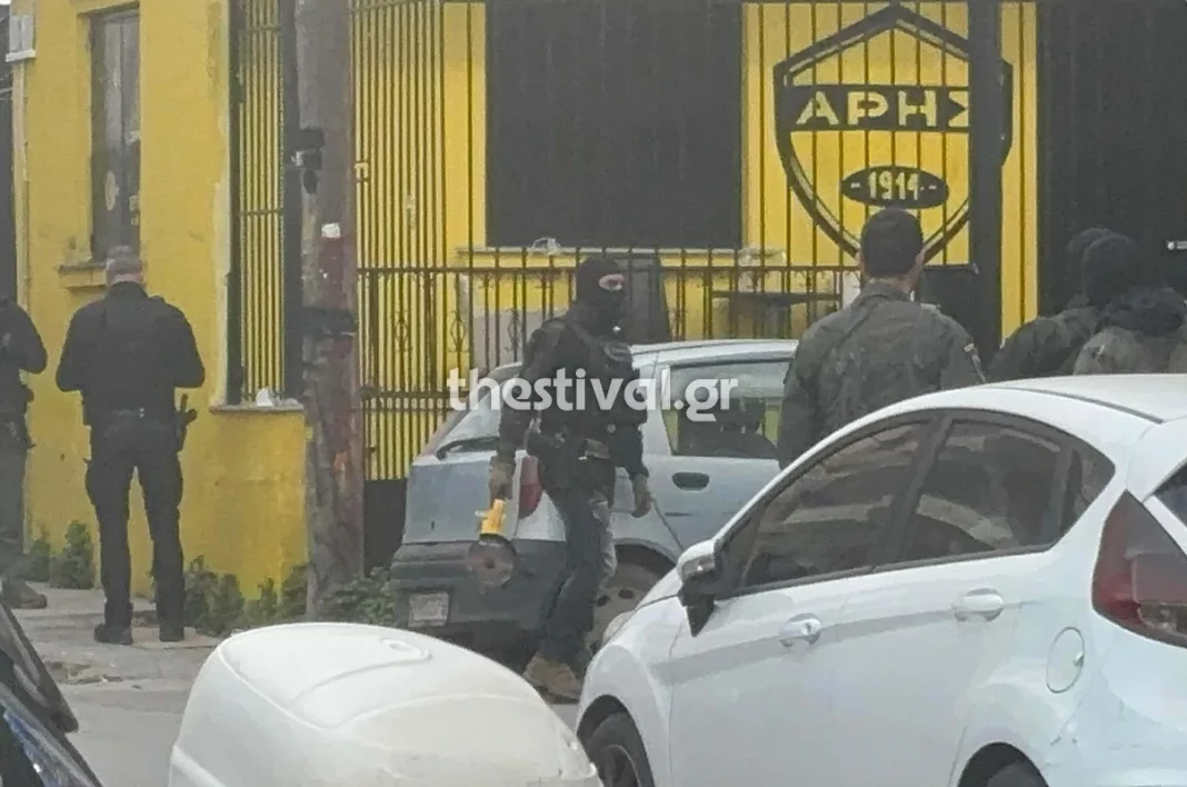 Νωρίτερα η ΕΛΑΣ, παρουσία δικαστικού λειτουργού, πραγματοποίησε έφοδο στο οίκημα που στεγάζεται ο σύνδεσμος στην περιοχή της Χαριλάου, πλησίον του γηπέδου “Κλεάνθης Βικελίδης. Πληροφορίες αναφέρουν πως στο πλαίσιο των ερευνών στον σύνδεσμο έχει προσαχθεί ένα άτομο, ηγετικό στέλεχος του συνδέσμου.