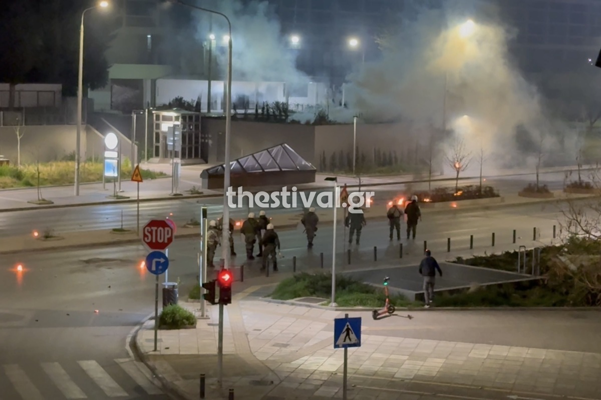 Να θυμίσουμε πως περίπου, στις 2:20 ομάδα κουκουλοφόρων βγήκε από το ΑΠΘ και επιτέθηκε με βόμβες μολότοφ σε στατική διμοιρία στην οδό Αγγελάκη. Οι αστυνομικοί των ΜΑΤ απώθησαν του δράστες της επίθεσης με χειροβομβίδες κρότου – λάμψης και δακρυγόνα.