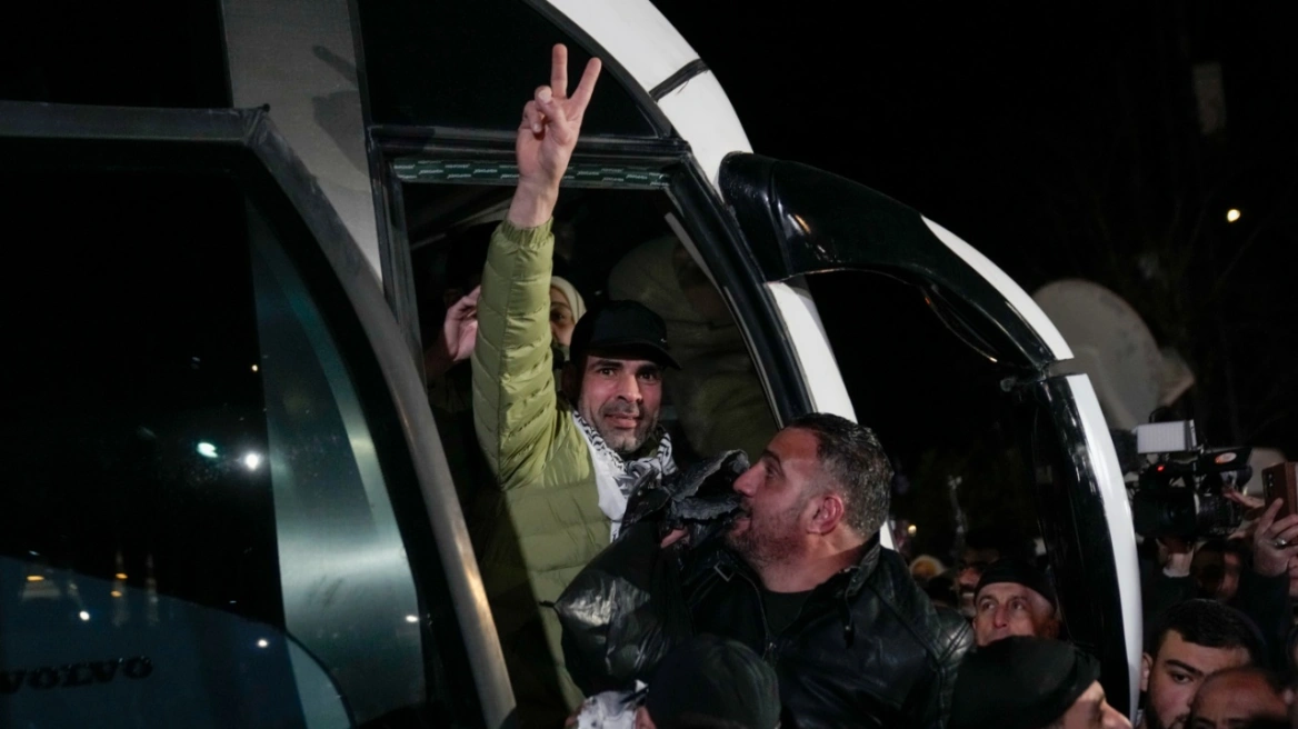 Φορώντας σάρπες και παραδοσιακά παλαιστινιακά μαντίλια για να καλύψουν τις στολές της φυλακής, οι αποφυλακισθέντες κατέβηκαν από το λεωφορείο μπροστά σε πυκνό πλήθος σε αγαλλίαση, προτού πάνε να υποβληθούν σε ιατρικές εξετάσεις, μετέδωσε ο δημοσιογράφος.