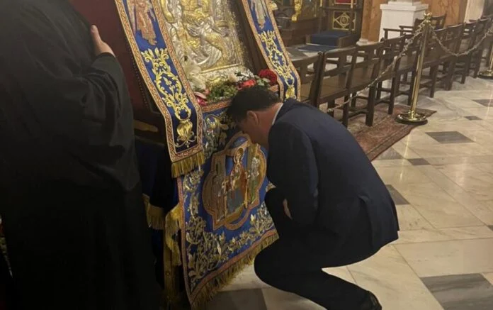 Ο υπουργός Ανάπτυξης και Επενδύσεων Άδωνις Γεωργιάδης πήγε να προσκυνήσει την Ιερά Εικόνα της Παναγίας «Άξιον Εστί» στη Μητρόπολη.