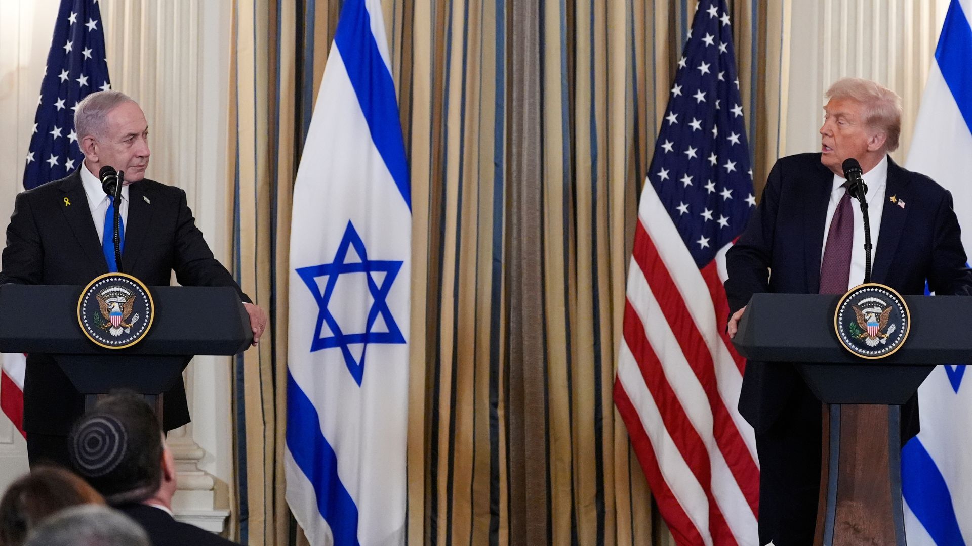 Συνέντευξη Τύπου παραχωρούν Ντόναλντ Τραμπ και Μπενιαμίν Νετανιάχου μετά τη κρίσιμη διμερή συνάντηση που είχαν στον Λευκό Οίκο με αντικείμενο την επίτευξη συμφωνίας κατάπαυσης πυρός με τη Χαμάς και απελευθέρωσης των ομήρων.