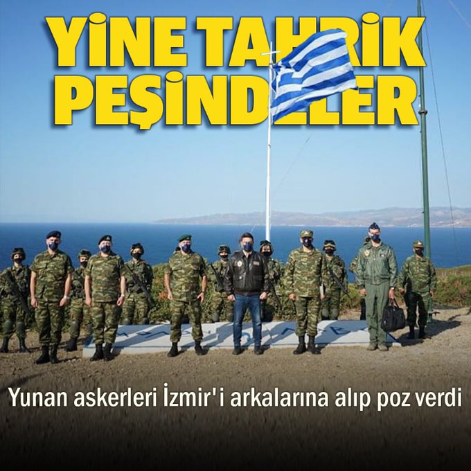 «Η Ελλάδα πραγματοποίησε άσκησε στις κατεχόμενες Οινούσσες, που είναι τουρκικό έδαφος. Παρακολουθώντας την άσκηση στο νησί, ο υφυπουργός Άμυνας Χαρδαλιάς πόζαρε έτσι ώστε η Σμύρνη να φαίνεται στο βάθος», αναφέρει η Sozcu.