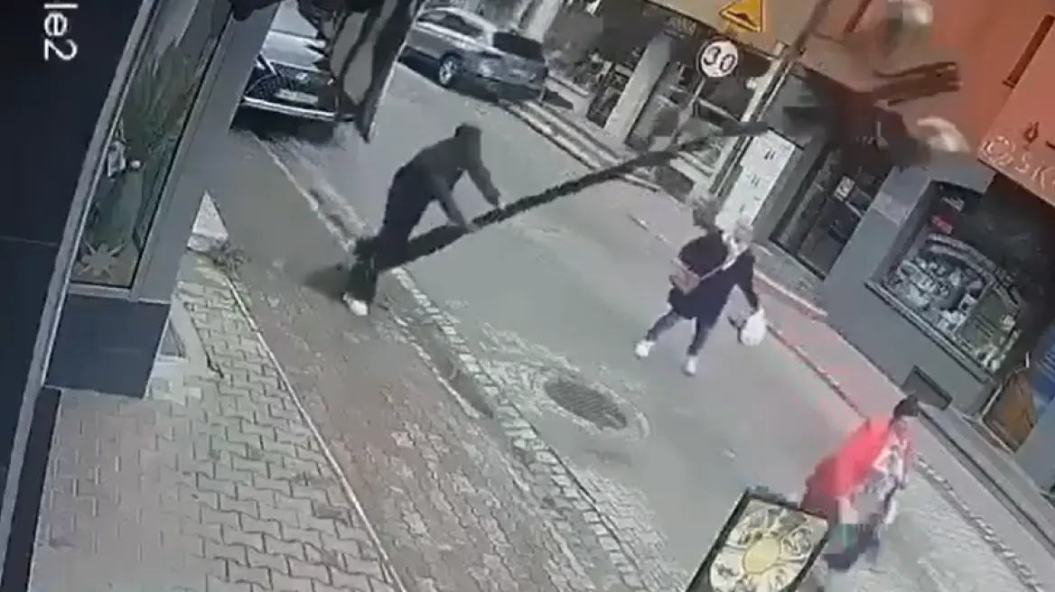 😱In the Polish town of Nowy Targ, a man leaned against a streetlamp — which collapsed and nearly crushed a woman passing by