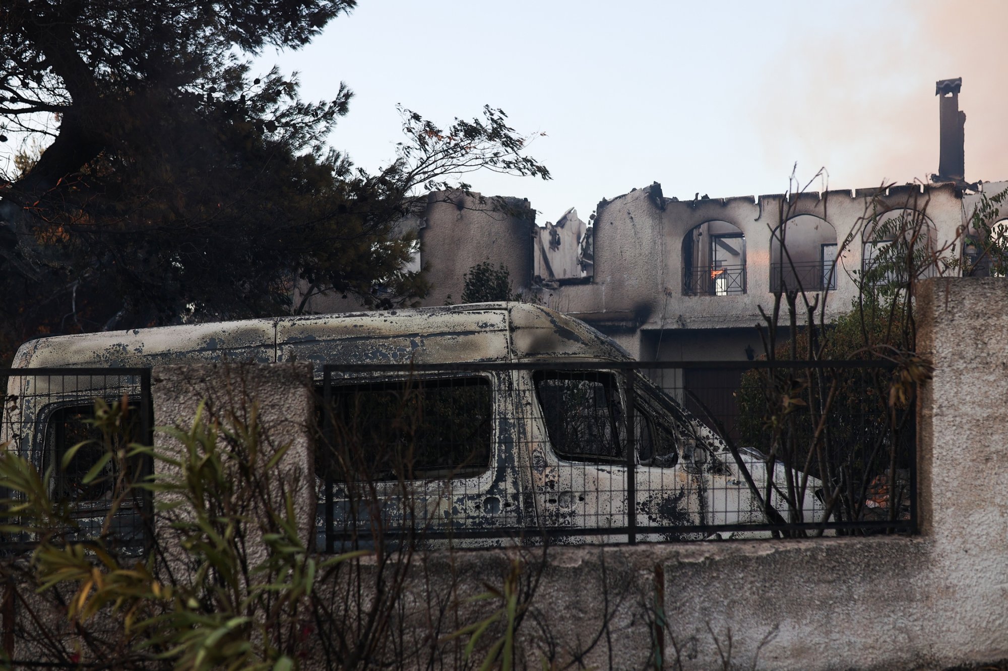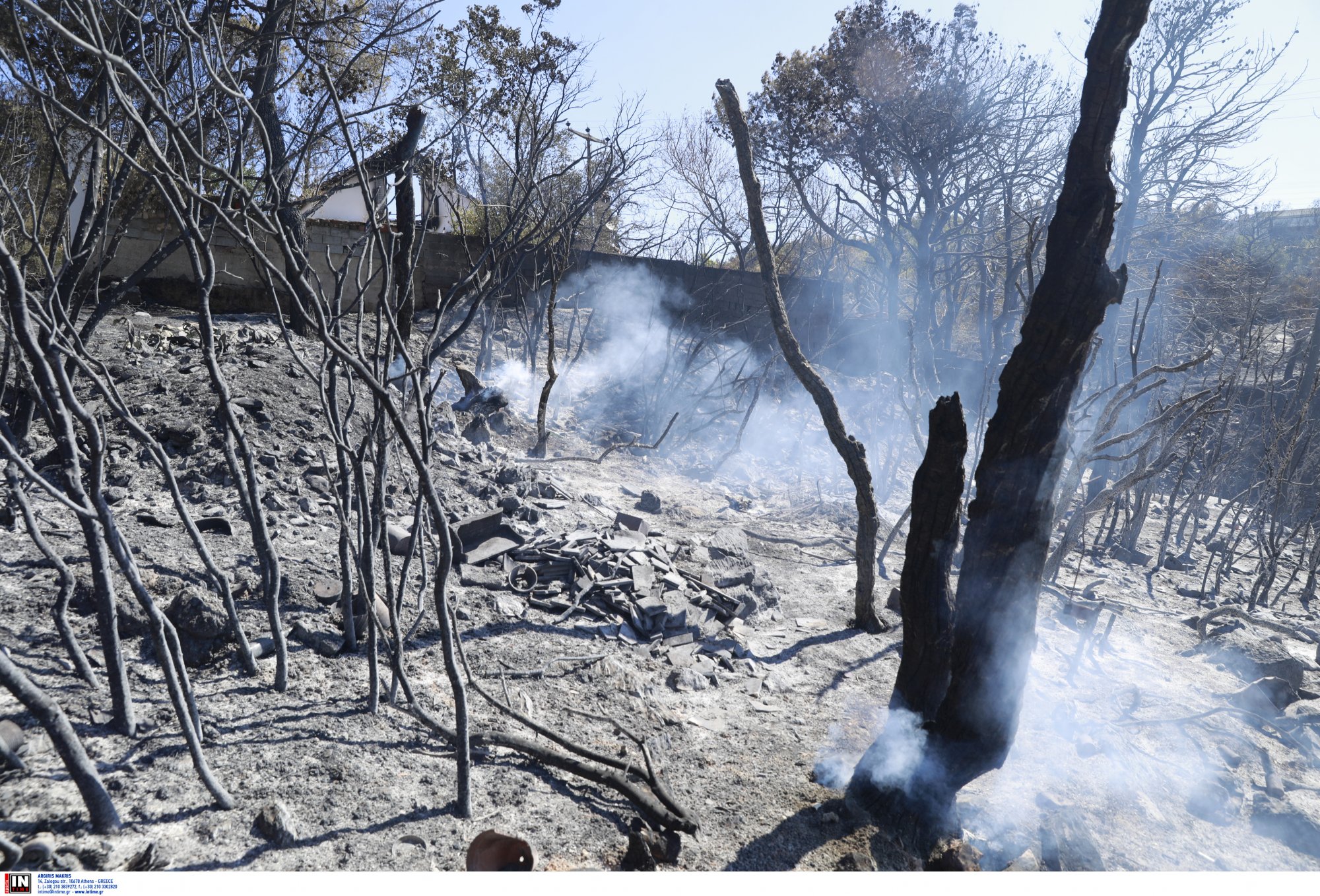 Το θερμικό φορτίο της φωτιάς κατέστρεψε ολοσχερώς πολλά σπίτια στην περιοχή του Βαρνάβα.