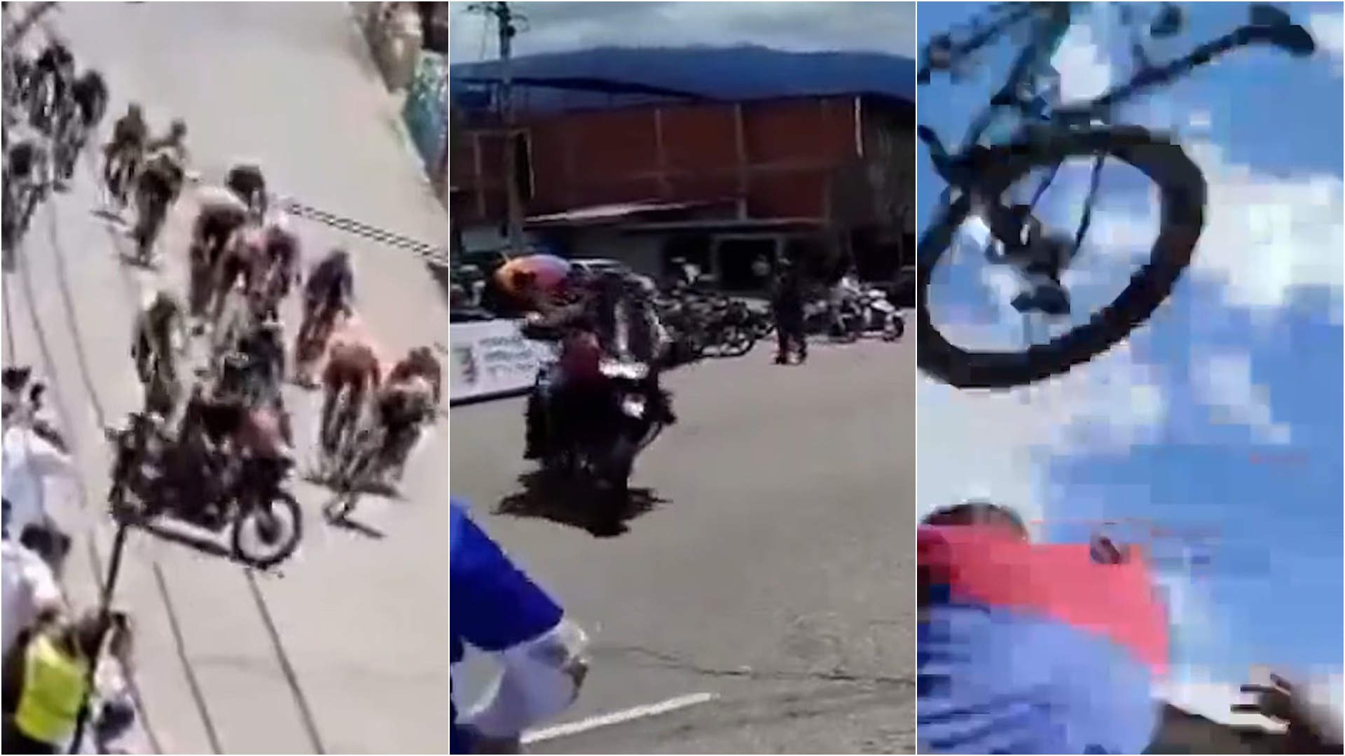 Σοκαριστικά πλάνα δείχνουν πώς οι ποδηλάτες εκτοξεύτηκαν στον αέρα κατά τη διάρκεια της καραμπόλας που σημειώθηκε στο τρίτο σκέλος του αγώνα Vuelta a Venezuela την Τετάρτη.