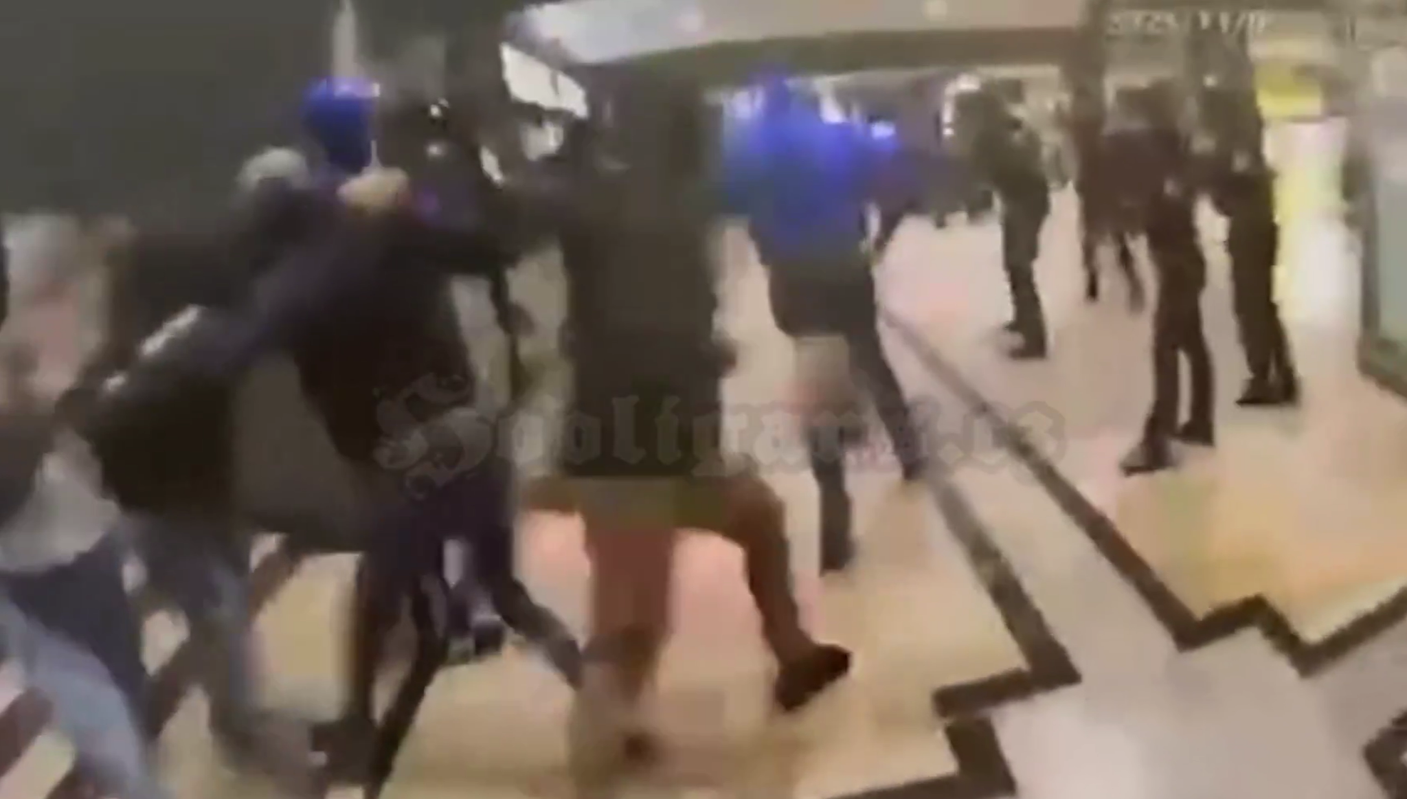Περίπου 340 άτομα ενεπλάκησαν στη συμπλοκή, πετώντας αντικείμενα και γροθιές, ενώ ο πανικός εξαπλώθηκε ανάμεσα στους ανυποψίαστους ταξιδιώτες.