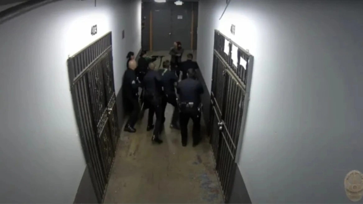 Οι εικόνες από κάμερα κλειστού κυκλώματος παρακολούθησης και φορητές κάμερες των αστυνομικών δείχνουν τον ύποπτο καθώς τον έχουν αποκλείσει επτά αστυνομικοί στο κτίριο στο κέντρο της πόλης. Αρχικά σηκώνει τα χέρια ψηλά και βαδίζει προς τα πίσω όπως του ζητούν, κατόπιν ξαφνικά στρέφεται προς αυτούς, μοιάζοντας να θέλει να τους επιτεθεί.