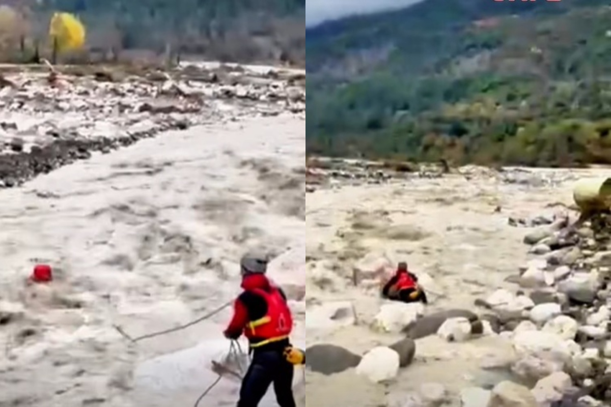 Την ίδια στιγμή, ο συνάδελφός του, που κρατούσε το σχοινί ασφαλείας, γλίστρησε και έπεσε επίσης στο ποτάμι, καταφέρνοντας ωστόσο να ακινητοποιηθεί πάνω σε έναν βράχο. Εκεί, με υπεράνθρωπη προσπάθεια συνέχισε να κρατά το σχοινί, δίνοντας στον διασώστη τον χρόνο που χρειαζόταν για να παλέψει με τα νερά και να βγει τελικά σώος στην απέναντι όχθη.