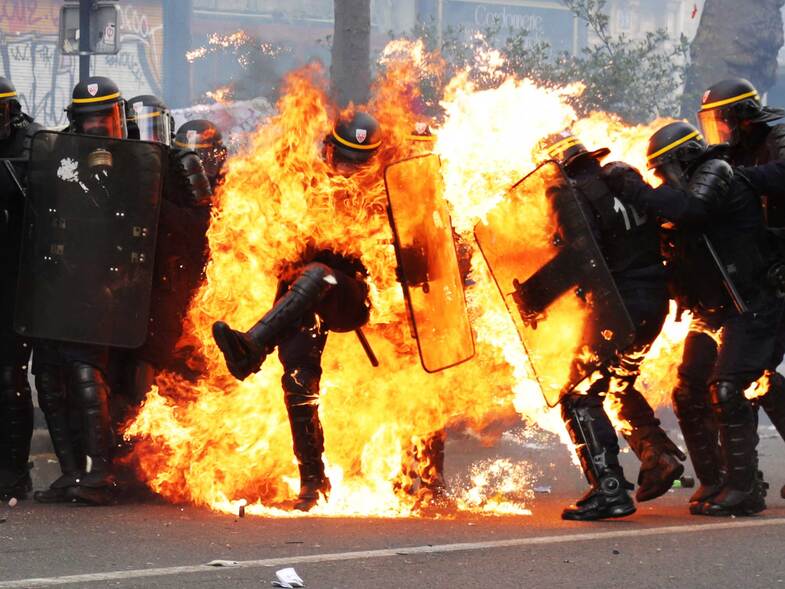Ένας φωτοειδησεογράφος του πρακτορείου Reuters που βρισκόταν στο σημείο είπε ότι είδε κάποιους από τους συγκεντρωμένους να εκτοξεύουν βεγγαλικά εναντίον των αστυνομικών, να ανατρέπουν ένα βανάκι, να σκαρφαλώνουν σε ένα αστυνομικό τμήμα και να ζωγραφίζουν γκράφιτι στους τοίχους του. Είδε επίσης τους αστυνομικούς να προσπαθούν να απωθήσουν τους διαδηλωτές, χρησιμοποιώντας τα γκλομπ και τις ασπίδες τους.