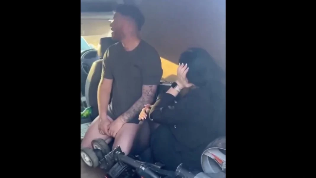 Στο βίντεο που καταγράφηκε στην περιοχή του Ντόνκαστερ, η Βρετανίδα ακούγεται να φωνάζει «την πηδάς στο πίσω μέρος του βαν;» πριν να ανοίξει την πόρτα του οχήματος.