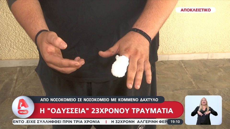 Ένας 23χρονος που έκοψε το δάχτυλό του με φαλτσέτα και χρειαζόταν επείγουσα ιατρική βοήθεια, πήγαινε από νοσοκομείο σε νοσοκομείο μέχρι να βγάλει άκρη και να βρει ποιος θα τον αναλάβει, με αποτέλεσμα, όπως καταγγέλλει ο ίδιος και η οικογένειά του, να χαθεί πολύτιμος χρόνος.