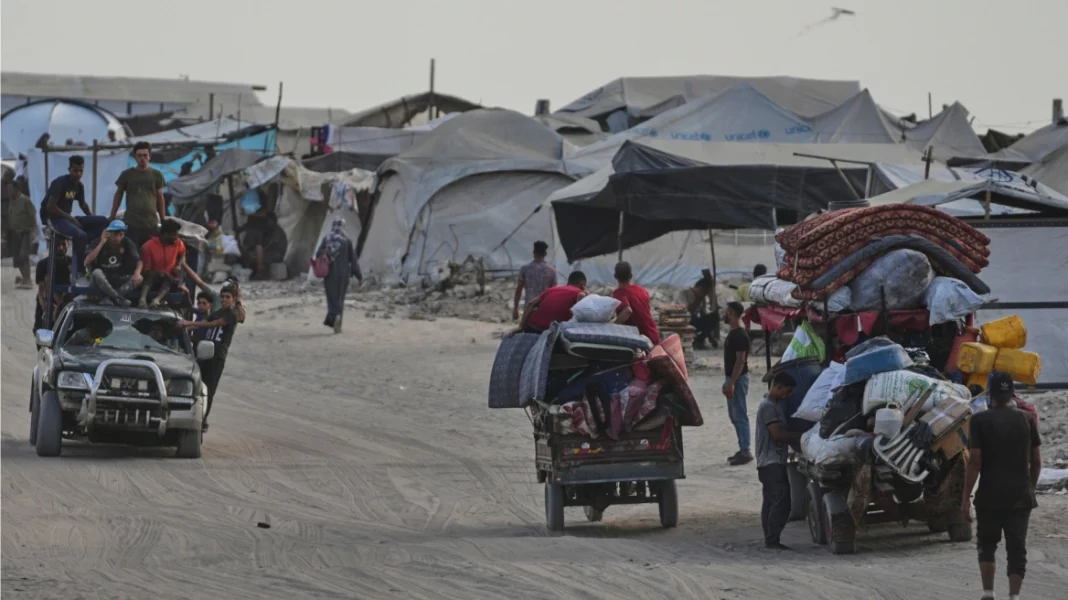 Στους δρόμους της πόλης της Γάζας, οικογένειες έπαιρναν τους δρόμους ξανά, με αποσκευές και στρώματα σε ποδήλατα και κάρα.