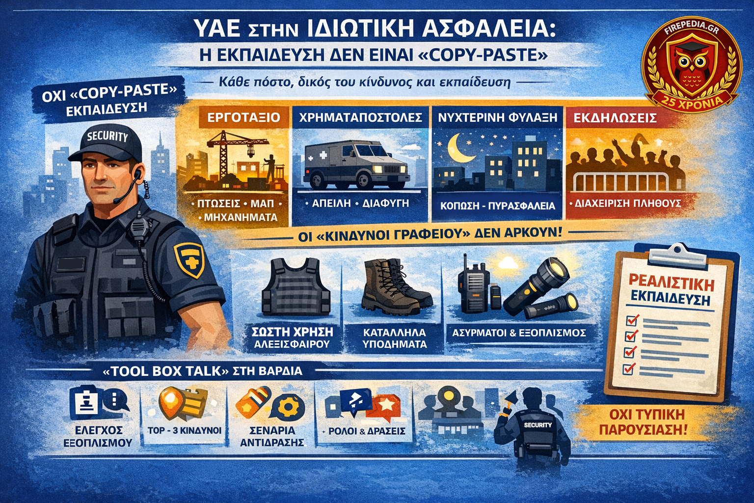 Αυτός είναι ο λόγος που η εκπαίδευση δεν είναι “copy-paste”: γιατί κάθε πόστο, κάθε εξοπλισμός και κάθε κίνδυνος απαιτεί το δικό του πρακτικό και εφαρμόσιμο πρόγραμμα.
