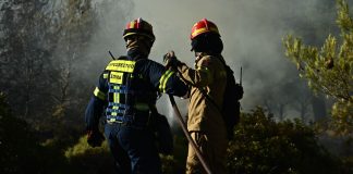 Επιχειρούν 6 πυροσβέστες με 2 οχήματα και ένα ελικόπτερο.