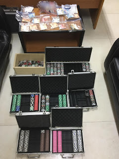 1439 μάρκες πονταρίσματος, διαφόρων χρωμάτων οι οποίες αντιστοιχούσαν σε χρηματικά ποσά και μία μεγάλη μάρκα “DEALER” και